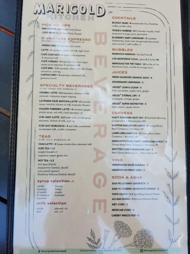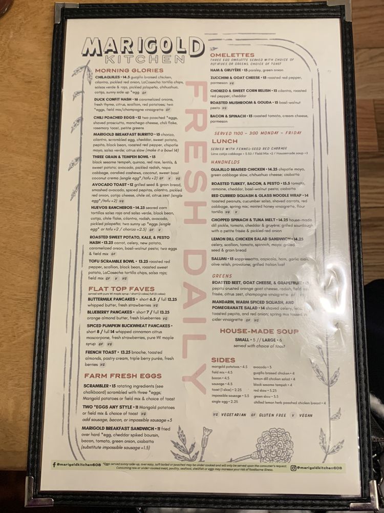 Marigold Kitchen Menu (Update 2025)